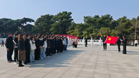 紧接着,在领誓人肖亮同学的带领下,全体学生党员面向鲜红的党旗,举起右拳,重温入党誓词。“我志愿加入中国共产党,拥护党的纲领,遵守党的章程……”铿锵有力的誓言在陵园上空回荡,表达了青年一代坚定不移跟党走的坚定信念和决心。