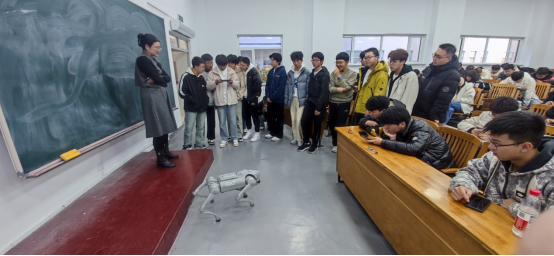 石林围绕具身智能发展史及现状、行业应用及案例、具身智能在高校领域的应用、机器狗“嘉宾”简介和亲密接触等内容展开,既有理论高度,也有行业典型应用。讲座过程中同学们认真听讲,积极参与互动,收获颇丰,自身的专业基础素养也得到了有效提升。