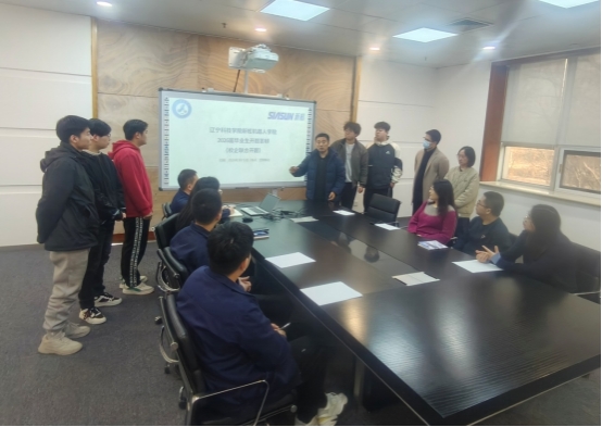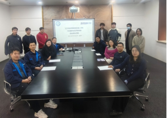 为深化校企协同育人成效,最大程度为在企学生提供便利,经过精心筹备与沟通,3月12日,电气与自动化工程学院(新松机器人学院)机器人工程专业李文义、冯暖、刘凯、韩雨宏等4位教师到沈阳中德新松教育科技集团有限公司,与新松教育校企合作部经理赵梦溪、技术总工张海鹏、工程师冯思远、田帅紧密配合、协同发力,共同为2022级机器人工程专业的11名参加“新松专业转换与技能提升培训项目”的学生现场开展毕业设计开题答辩工作,真正实现校企协同育人、精准赋能学生成长的目标。