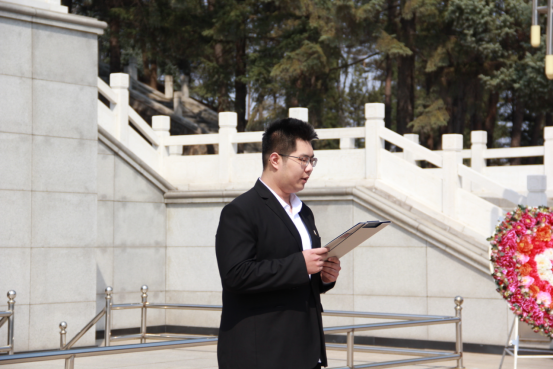 默哀仪式后,党员代表庄光鹏以《丰碑永驻忆峥嵘· 缅怀先烈铸党魂》为题发表演讲。他在演讲中表示,要以先烈为镜,不断锤炼党性,把对革命先烈的深切缅怀,转化为对党忠诚、服务人民的实际行动;把对峥嵘岁月的深刻追忆,转化为攻坚克难、砥砺前行的不竭动力。要继承先烈遗志,将他们未竟的事业进行到底,将崇高的理想信念内化于心、外化于行,在社会建设中贡献力量,努力成为一名无愧于先烈、无愧于时代的党员。